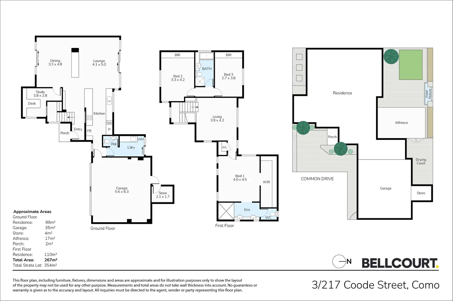 - Separate laundry with plenty of storage and direct access to the rear drying court + powder room
