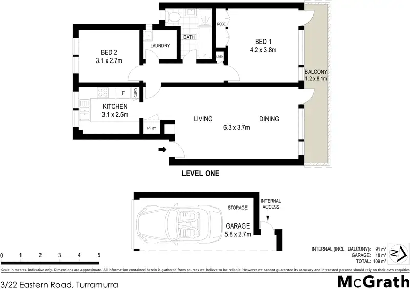 2 Bed • 1 Bath • 1 Car • 109m²