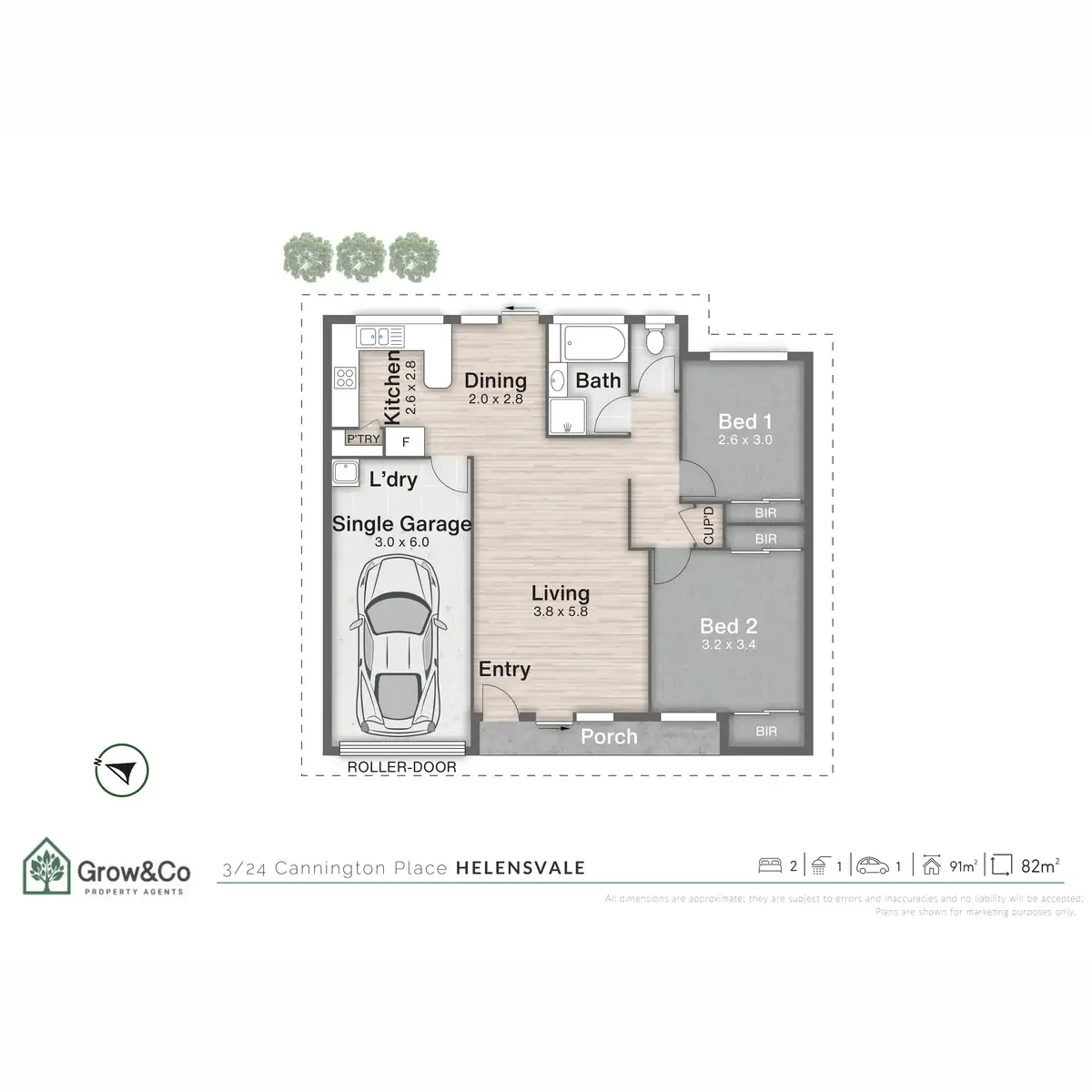 2 Bed • 1 Bath • 2 Car • 82m²