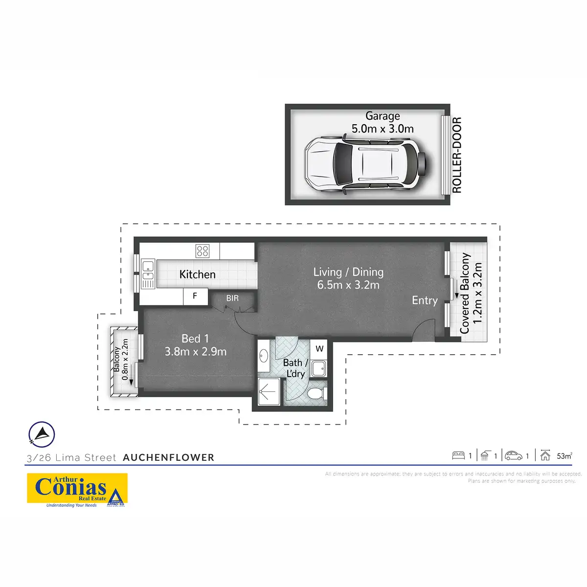 1 Bed • 1 Bath • 1 Car