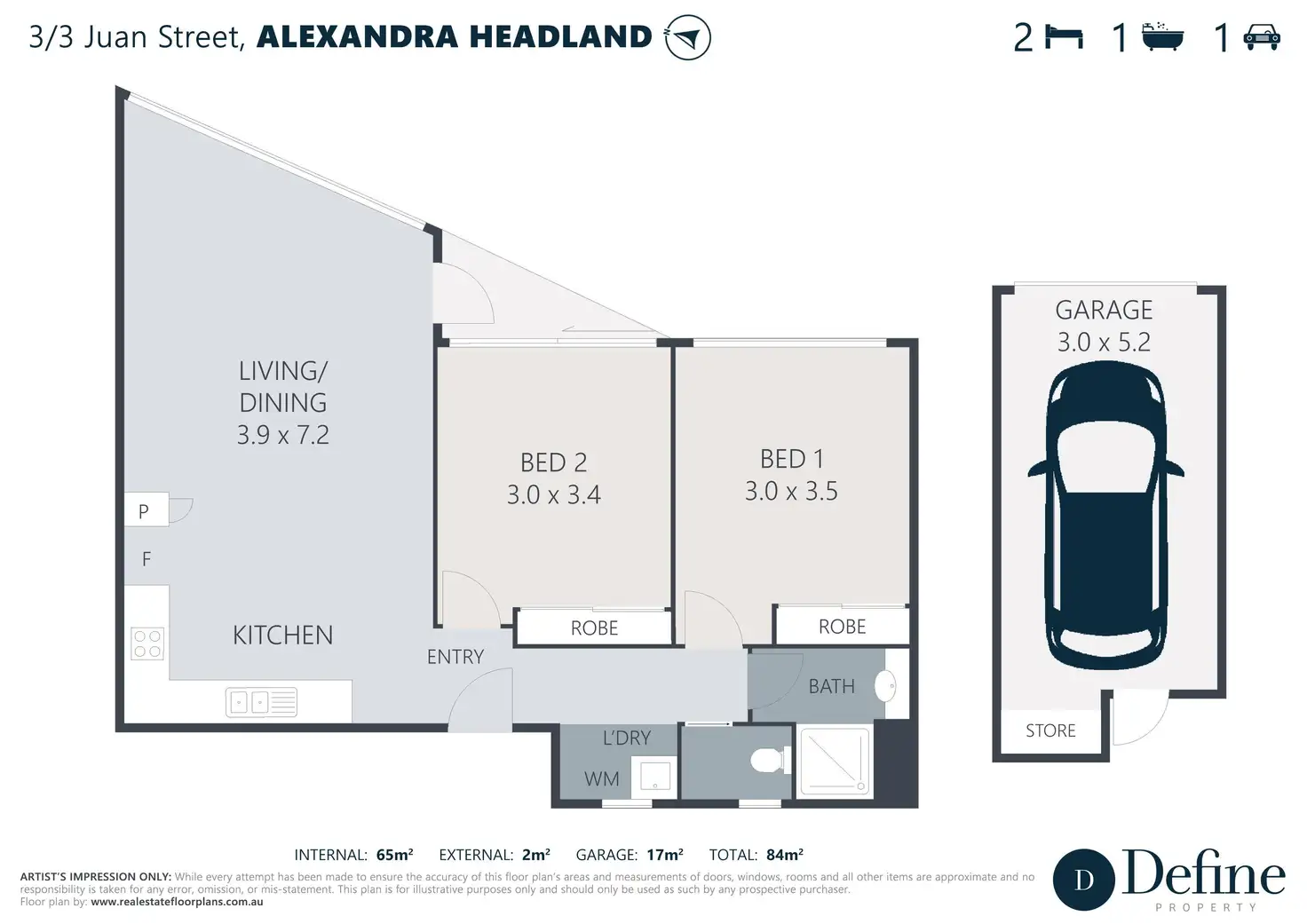 2 Bed • 1 Bath • 1 Car