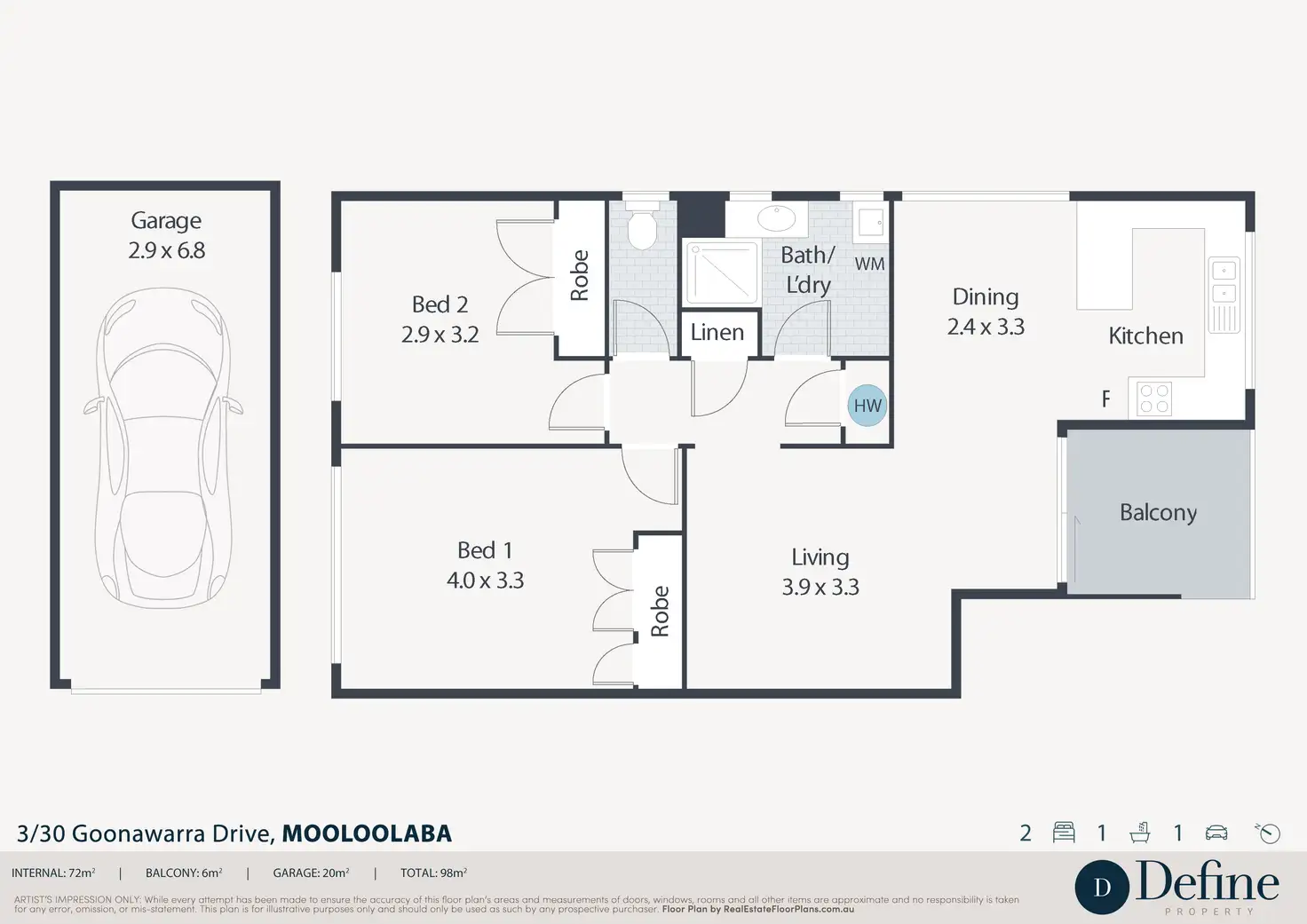 2 Bed • 1 Bath • 1 Car