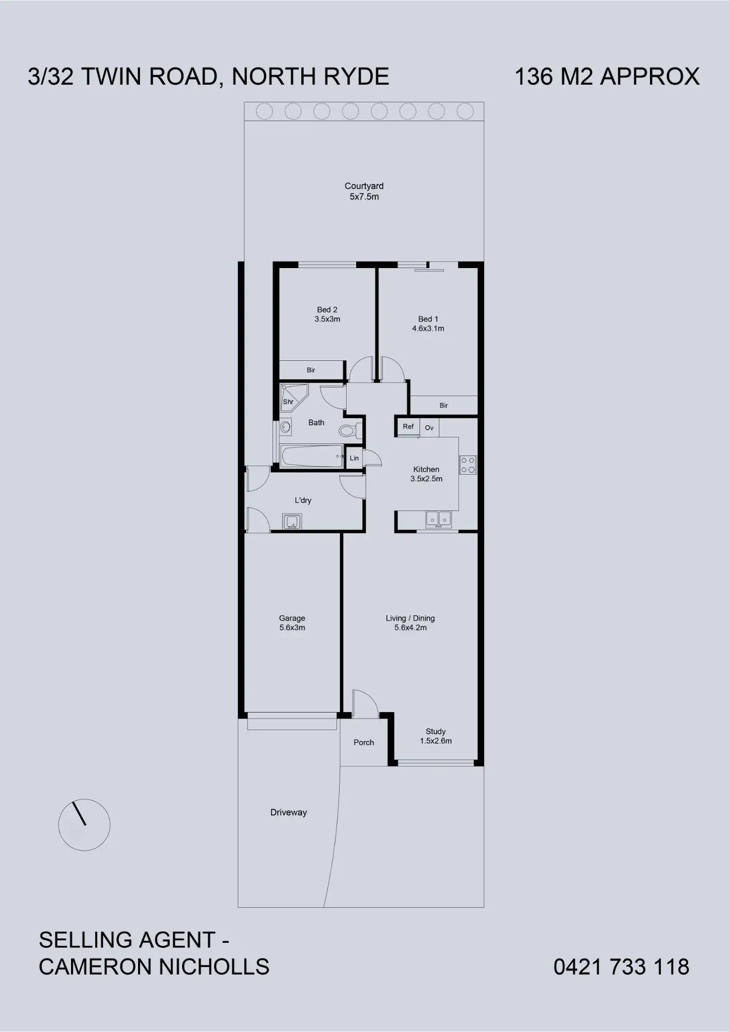2 Bed • 1 Bath • 2 Car • 136m²