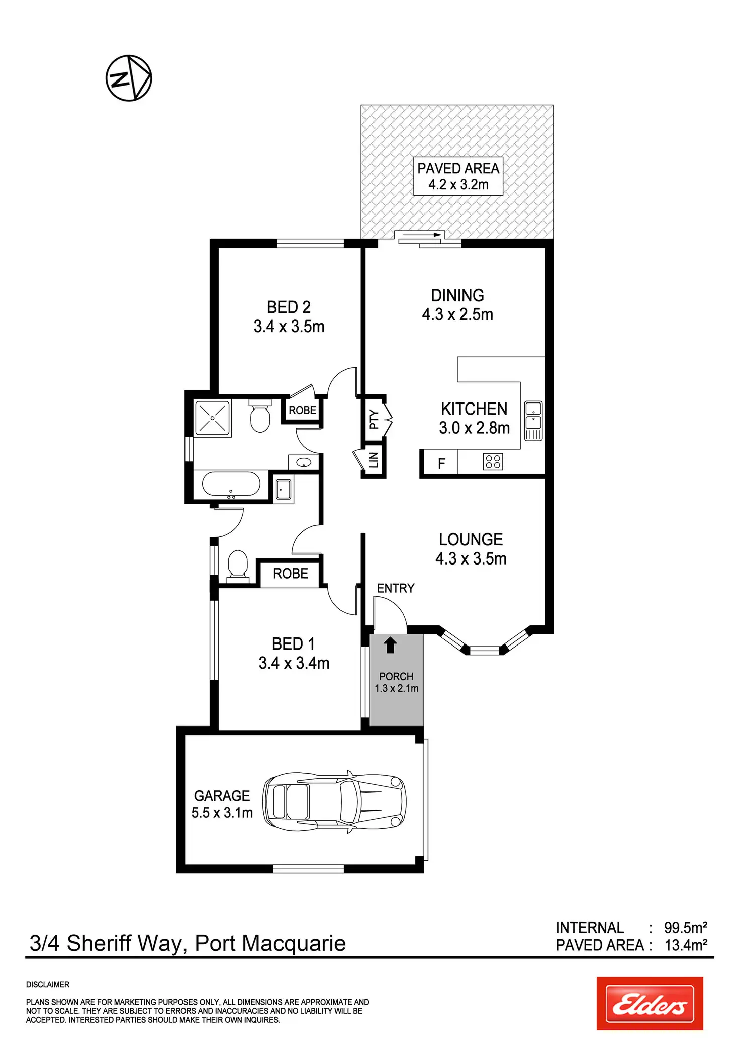 2 Bed • 1 Bath • 1 Car • 205m²