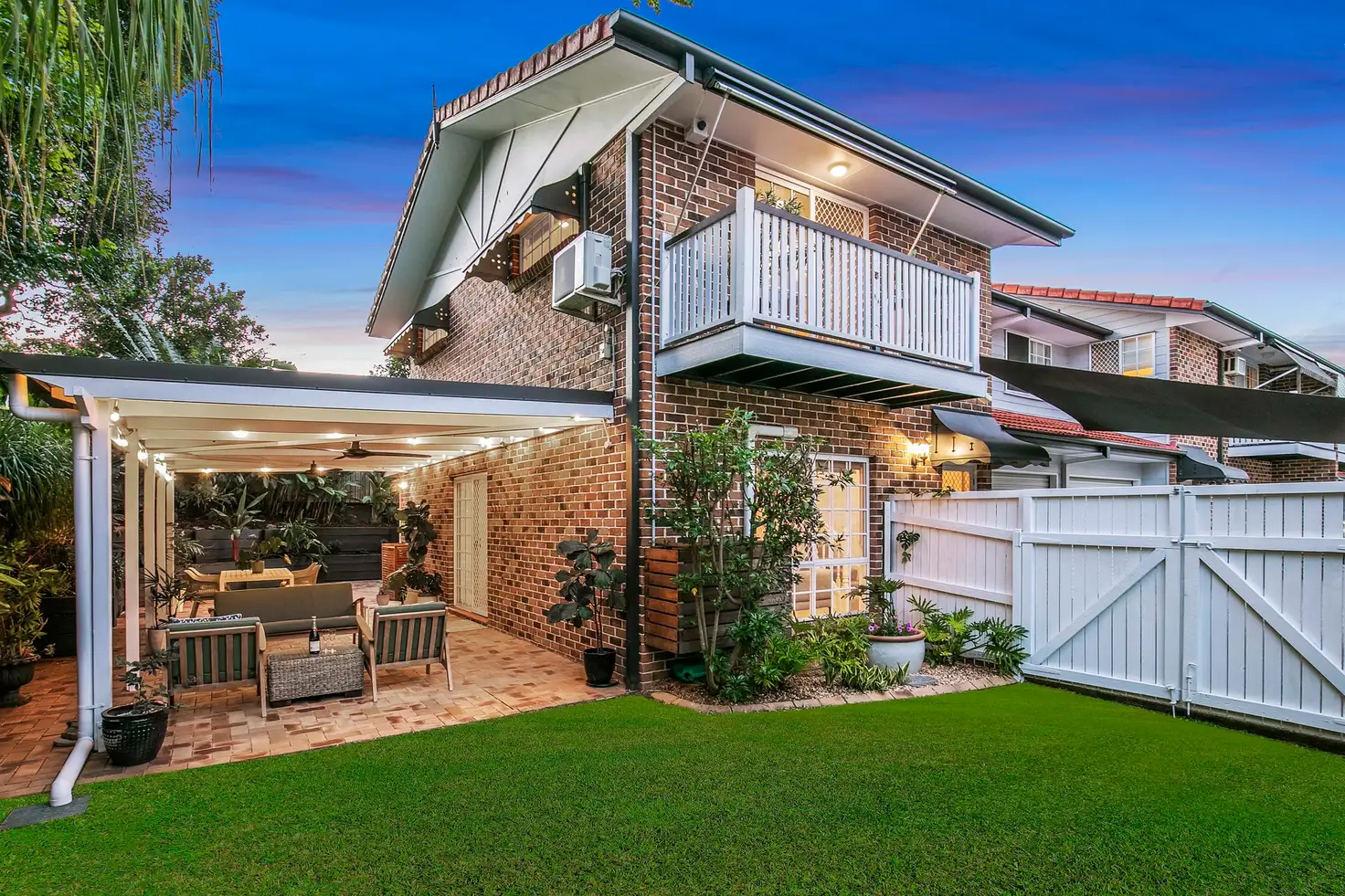 Light and airy, this whisper quiet townhouse enjoys cooling bay breezes in summer and sun filled winters in an oversized garden courtyard. The covered entertaining terrace is the hub of the home providing the perfect spot for casual meals with friends and lazy morning coffee. Mature shade trees and landscaped garden beds provide privacy in this quiet pocket, just 5km from Brisbane CBD.