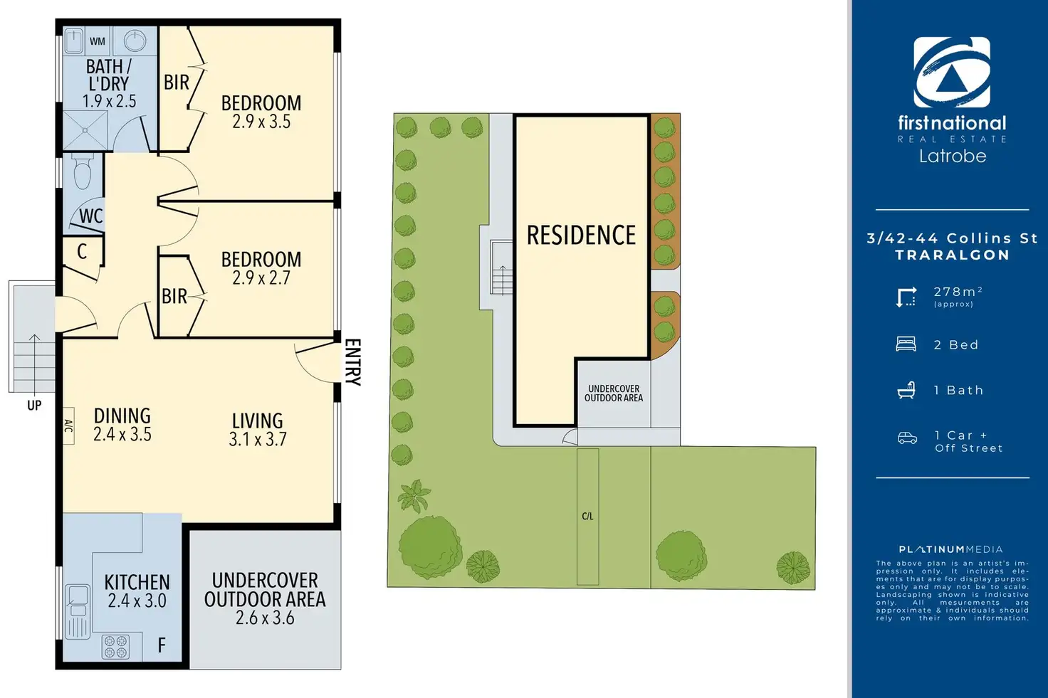 2 Bed • 1 Bath • 1 Car • 278m²