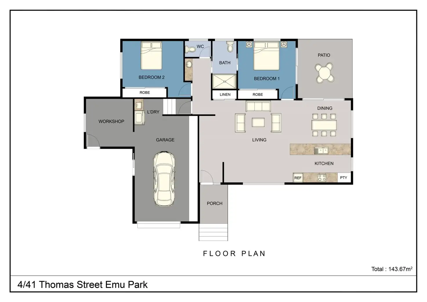 2 Bed • 1 Bath • 1 Car • 750m²