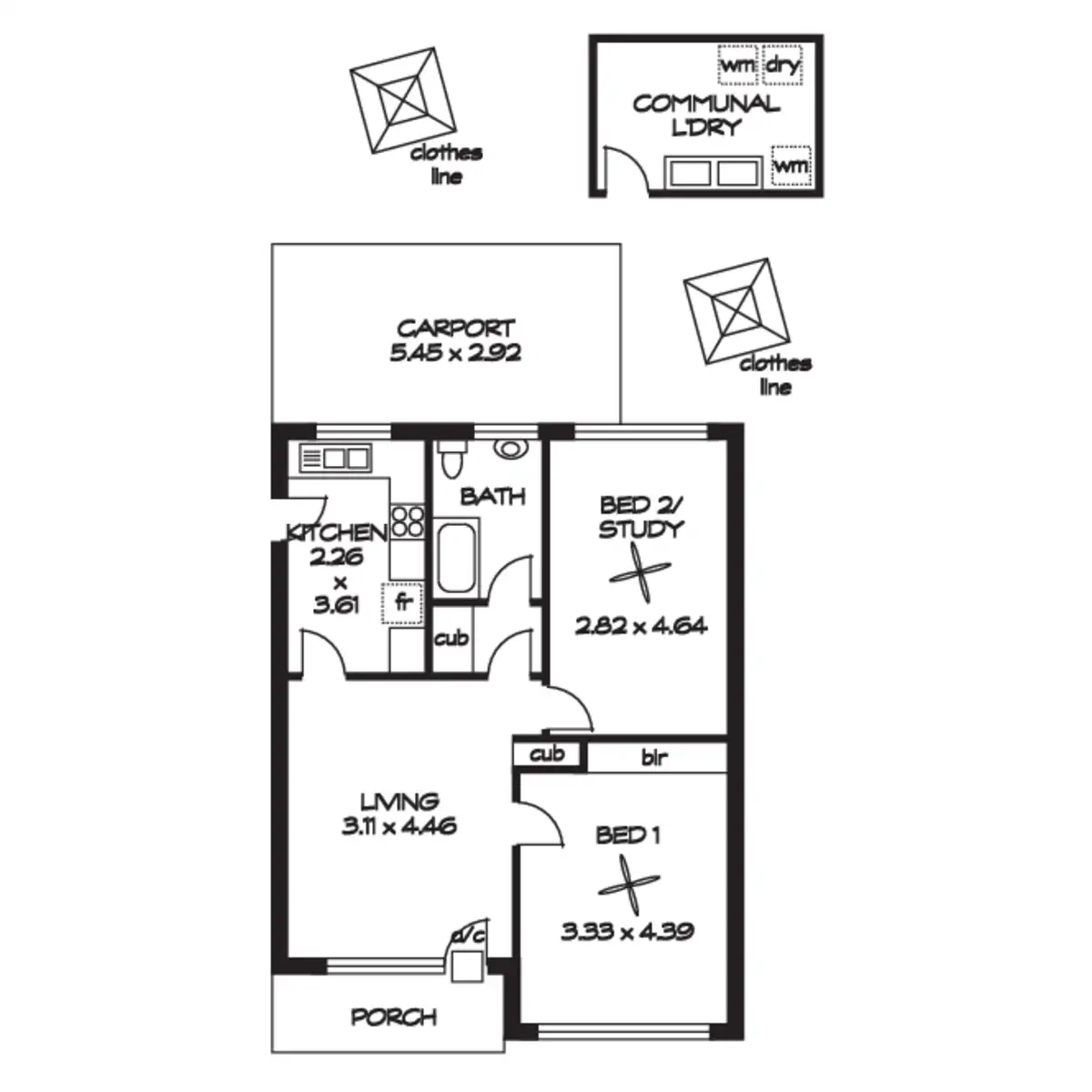 2 Bed • 1 Bath • 1 Car