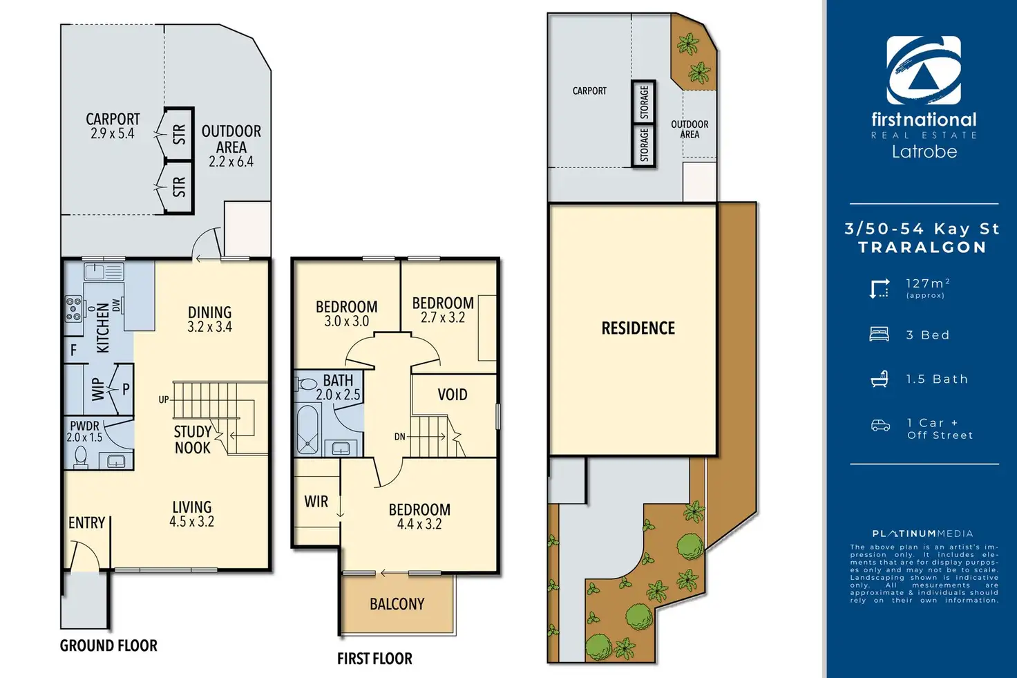 3 Bed • 2 Bath • 1 Car • 127m²