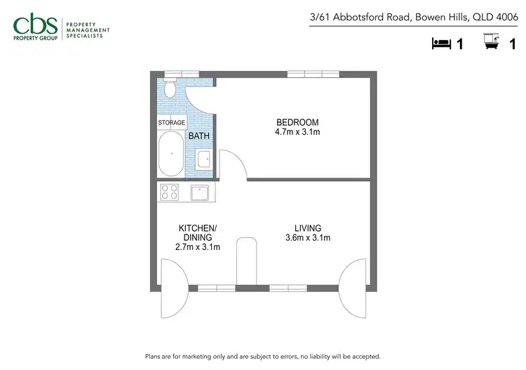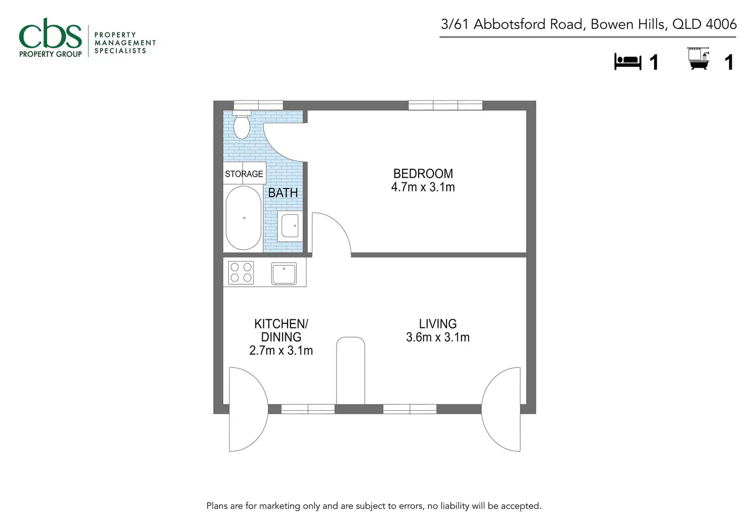 1 Bed • 1 Bath • 0 Car