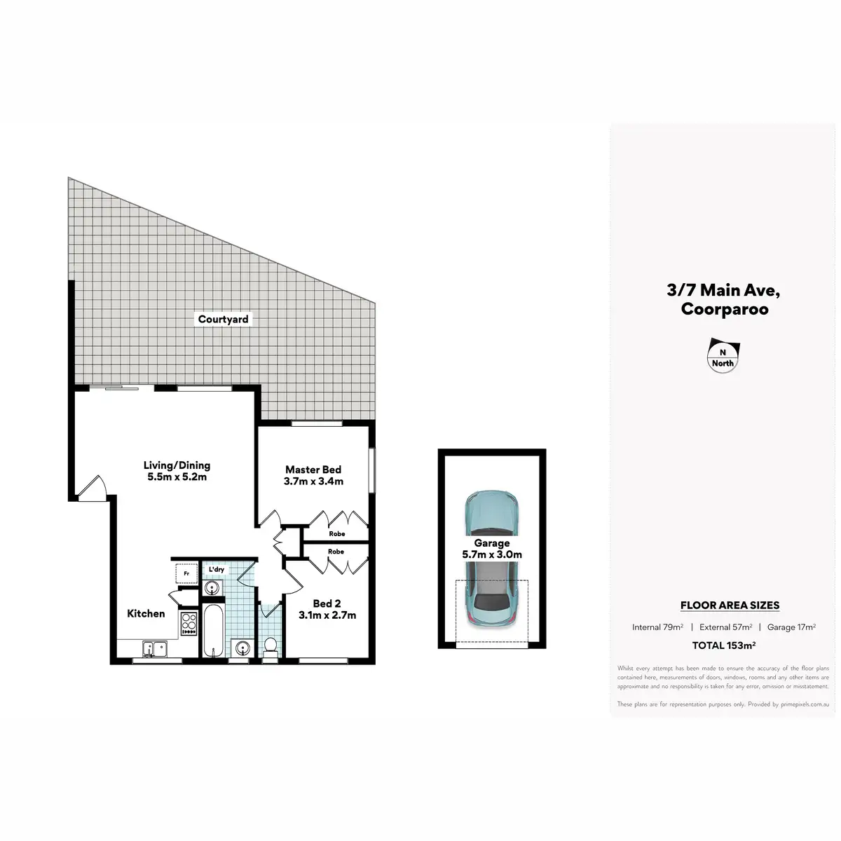 2 Bed • 1 Bath • 1 Car • 153m²
