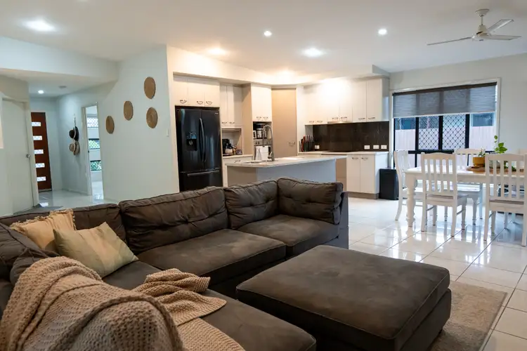 Inside, the home is well presented and ready for its next owner. Smart tiling throughout helps keep the home cool during the warmer months, while the well designed kitchen is ideal for entertaining, complete with a breakfast bar. The open plan living and dining areas are enhanced by high ceilings, creating a spacious and welcoming atmosphere. Rest easy in this secure home with security screens on all windows and doors giving you peace of mind. All four bedrooms are generously sized, fit a queen bed and include ceiling fans, air conditioning, and built-in wardrobes.