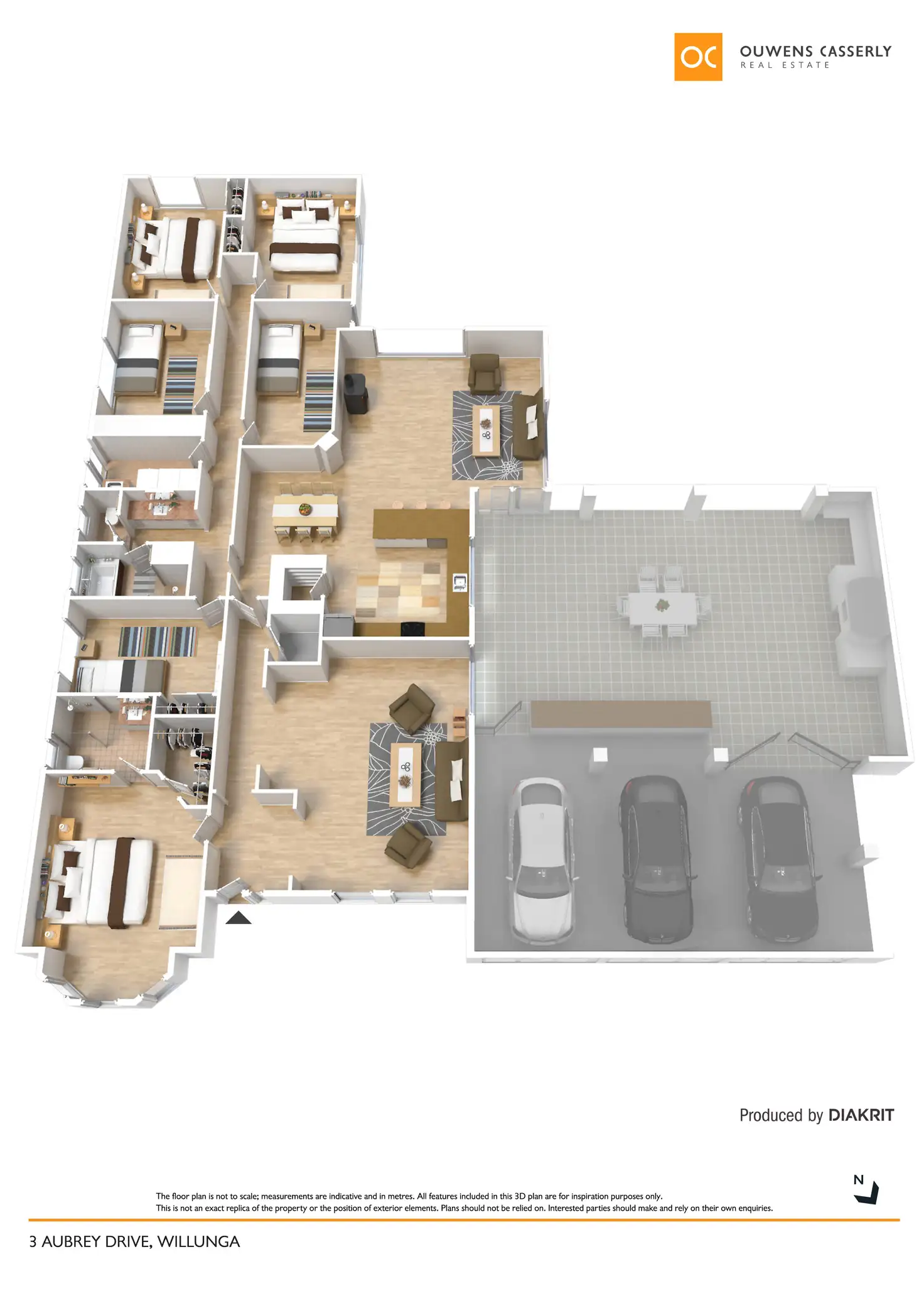 - Triple carport with electric roller doors, connected to the vast entertaining space offering drive through access to the shed
