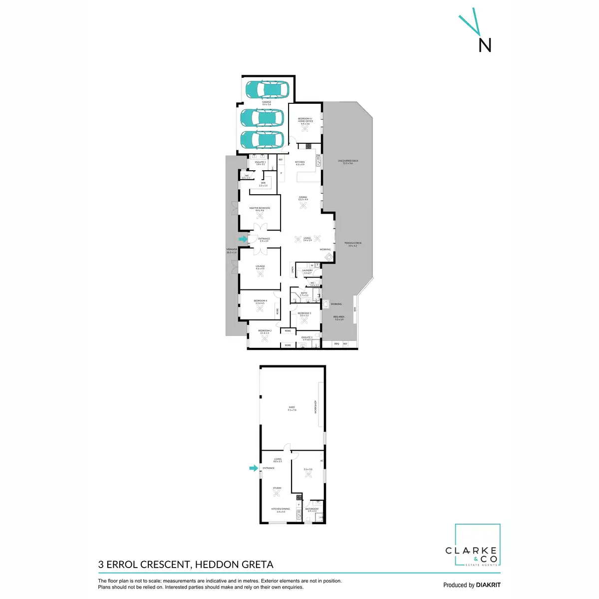 - Double garage and studio with new carpet, fresh paint, ceiling fan, kitchenette with a stainless steel sink and Technika oven, large potential bedroom (STCA) with an ensuite and split system air conditioning.