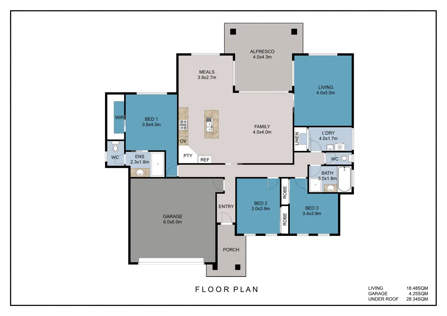3 Bed • 2 Bath • 2 Car • 643m²