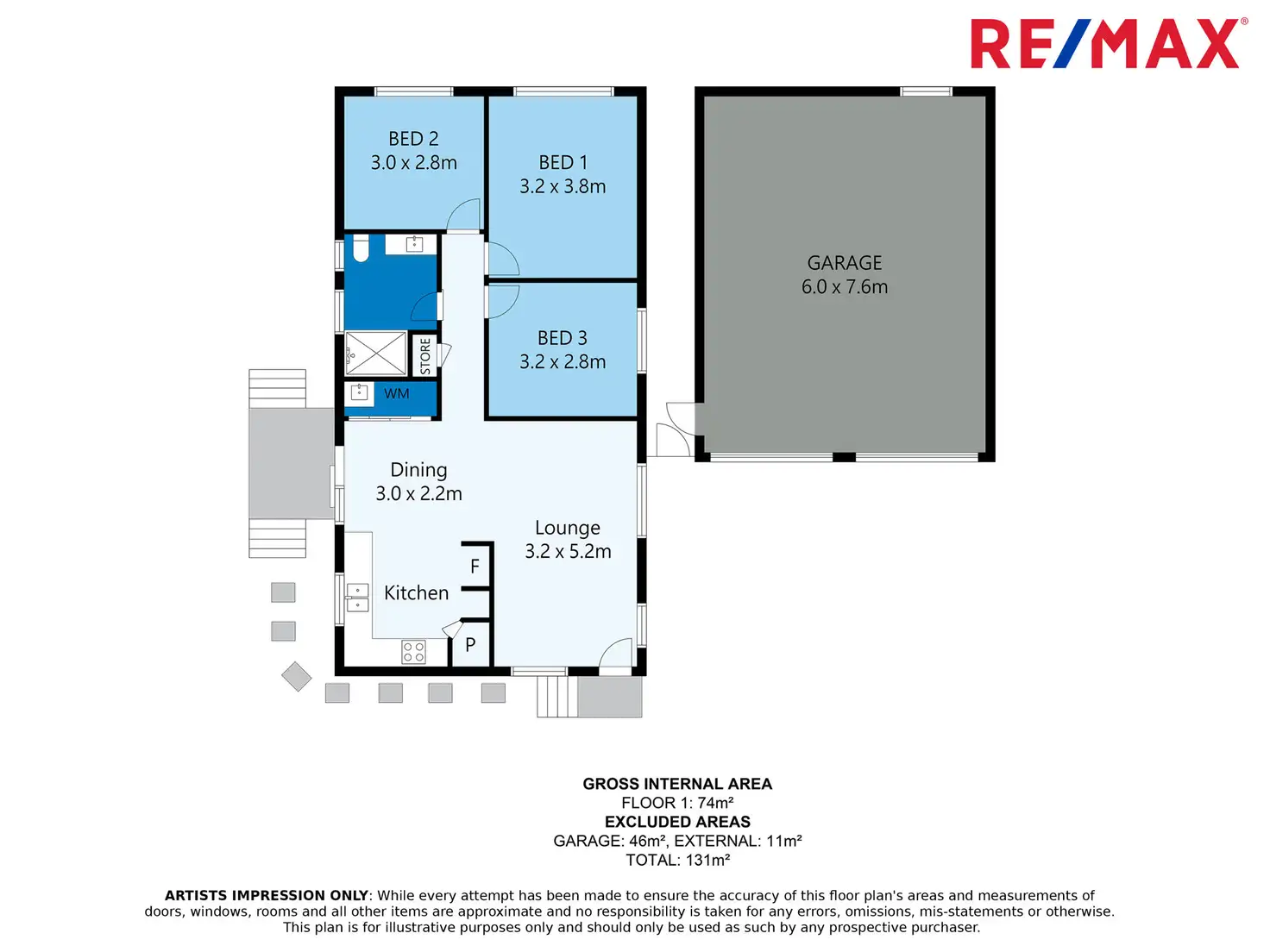 3 Bed • 1 Bath • 2 Car • 768m²