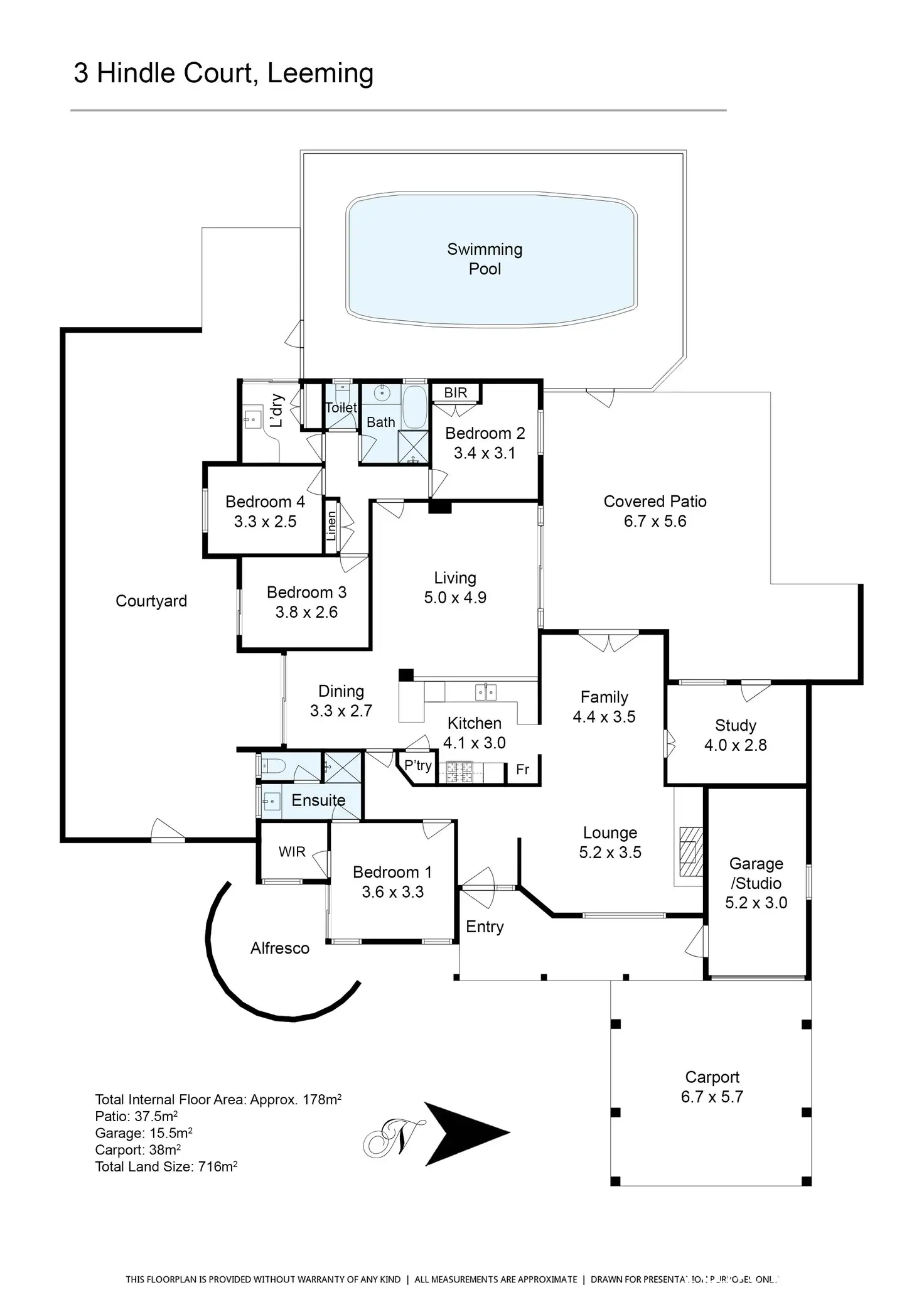 it's set on 716sqm and outside there are areas for the kids to play in, a pool to keep everyone happy