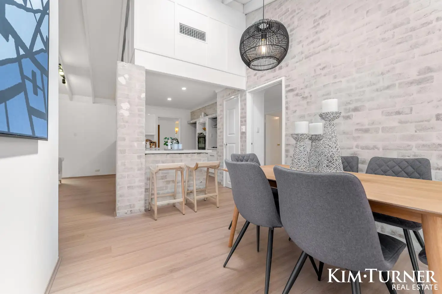 makeover - think gleaming white walls, timber-look flooring and white-washed brickwork.