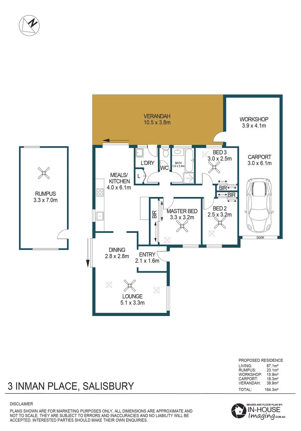 There are three bedrooms, all with built-in robes and ceiling fans along with easy access to the main bathroom with a separate bath, shower and toilet. A laundry, with external access, completes the internal floor plan.