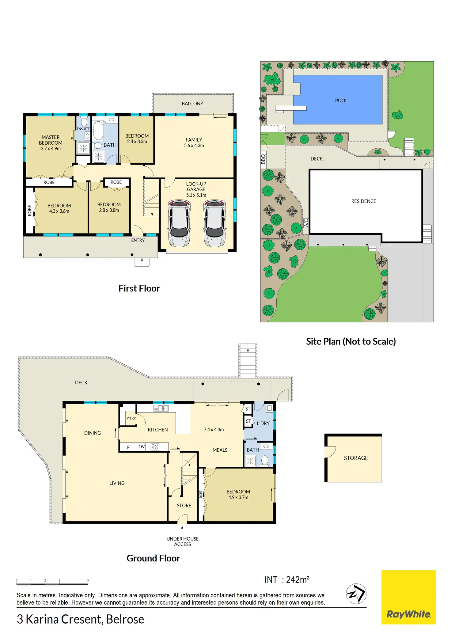 Outdoor features include a large wrap-around deck with a glass balustrade overlooking the expansive pool with a diving board, making it the perfect spot to relax on sunny weekends. The property also offers plenty of additional storage space and a double lock-up garage with a remote control tilt-a-door, plus off-street parking for two more cars.