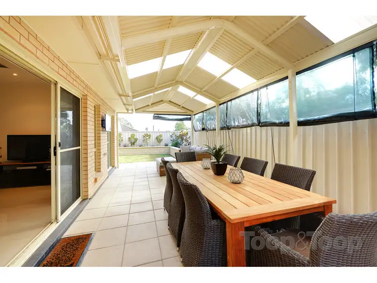 The open plan dine and living area over-look the pitched roof pergola. Through double glass sliding doors that open back to create a large walk-way to the outside entertaining area, you???ll be able to enjoy this brilliant alfresco space. With paving underfoot and roll down caf?? style blinds means this area is protected from the elements and feels like an extension of the home. The current owners have mounted a flat screen TV, and you could picture lazy weekends sitting around watching your favourite movie or sporting game. Around one side of the home is a grassed area and to the opposite side, behind a timber slat wall is a service area, and access down the side of the home.