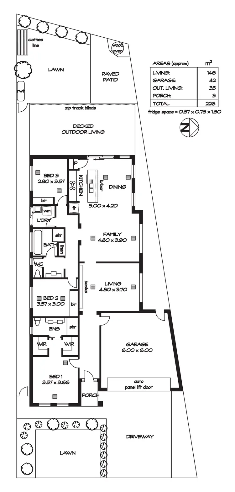 * Fabulous verandah covered outdoor living deck, complete with Ziptrack blinds