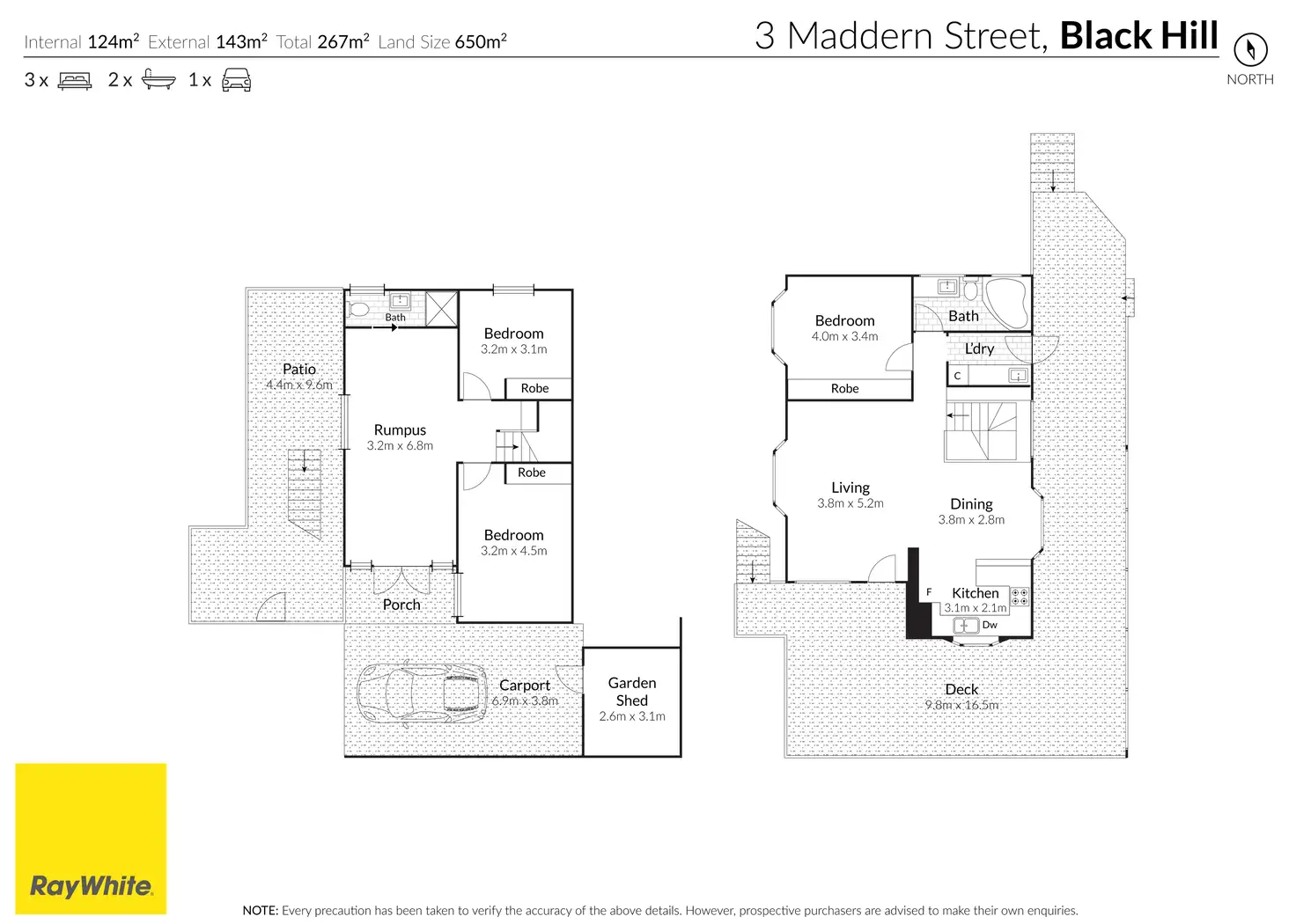 3 Bed • 2 Bath • 1 Car • 650m²