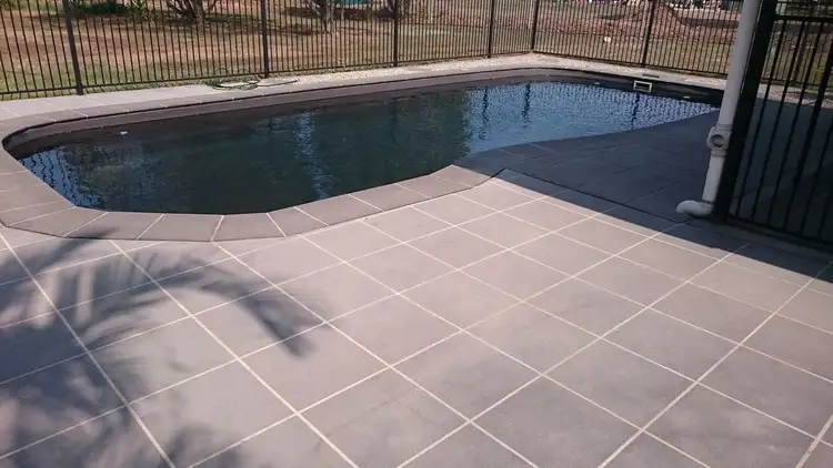 In ground 9m salt water Narellan pool (note SPA not included), stenciled concreted pool area.