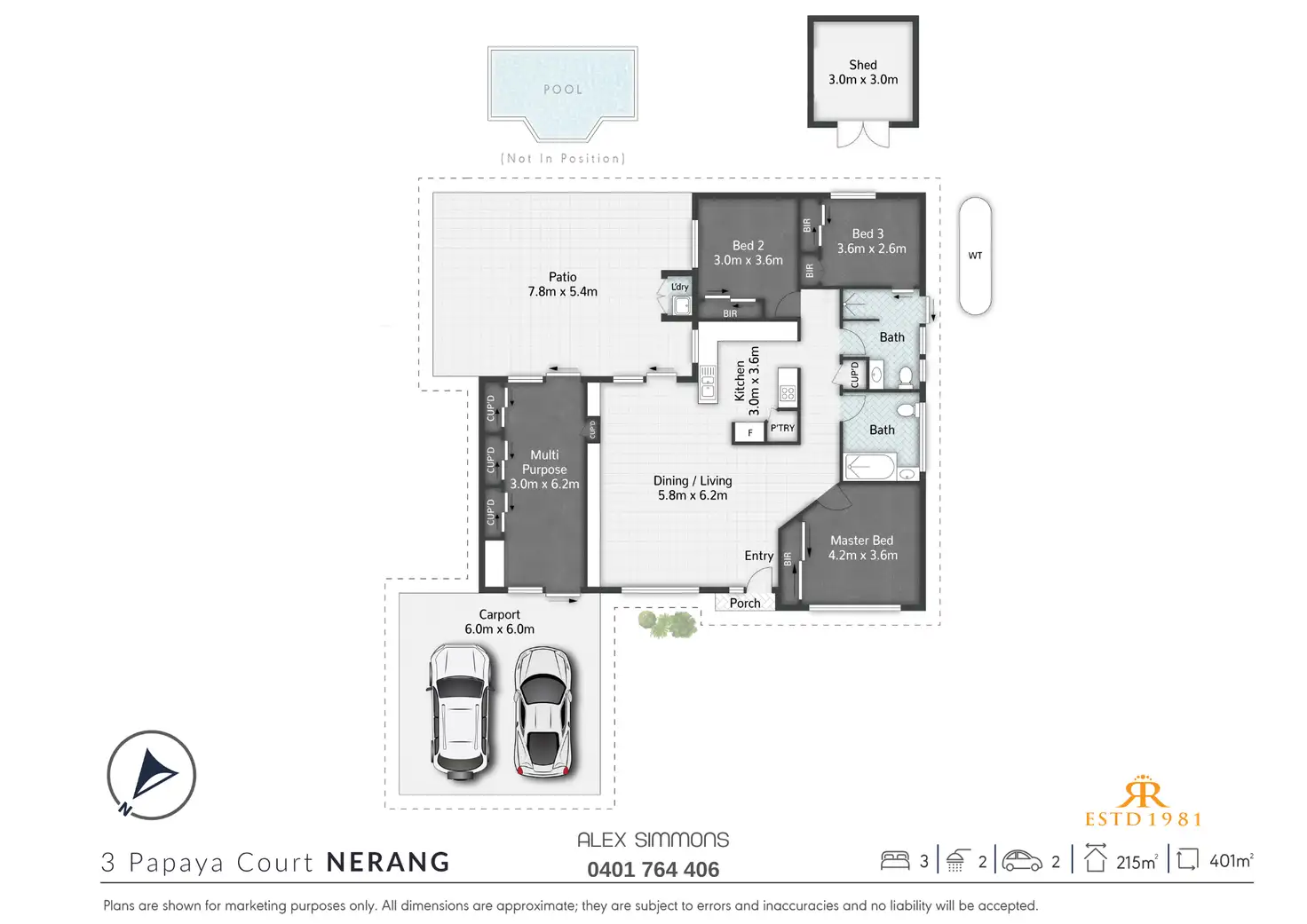 3 Bed • 2 Bath • 2 Car • 401m²