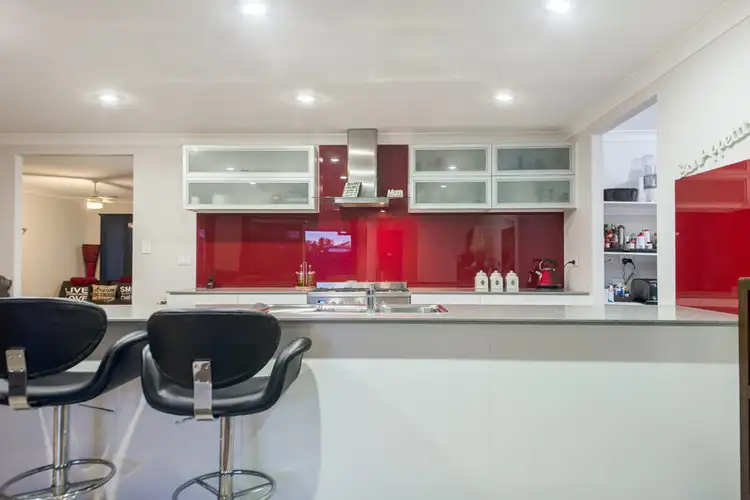 Other features include the 4 bedrooms, master with an ensuite and large full width W.I.Robe behind a false head wall. B.I Robes are included in the other 3 bedrooms, all serviced by the second bathroom. The attractive white 2-pac galley style kitchen with drawers along one length, either side of the 900 mm gas stove with range-hood, dishwasher and an enormous W.I. pantry. The views from the kitchen are out across the family & dining rooms, towards the rear outdoor area. A separate formal lounge is located at the front of the home.