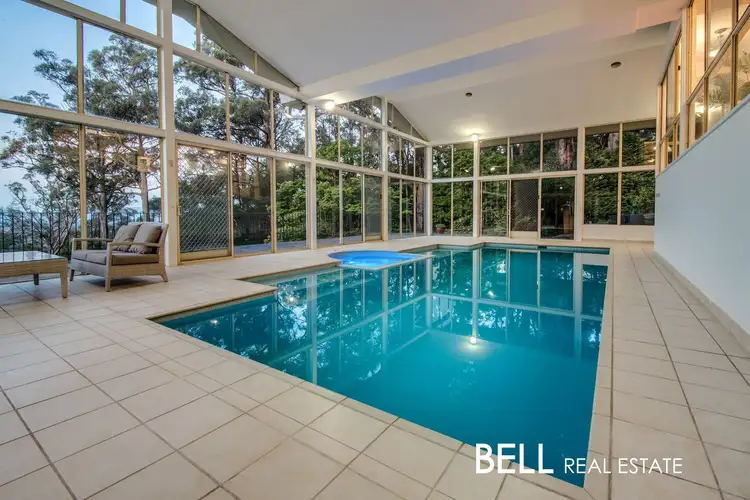 Mesmerising from first glimpse and offering an unparalleled lifestyle of luxury showcasing breathtaking north facing views of Silvan Reservoir and the Dandenong Ranges, this grand lifestyle residence is thoughtfully tailored to provide a versatile family format with boundless space on almost three park style acres. With a view that will keep you engaged day in, day out, where no two sunrises will be the same, the spectacular setting stretches all the way to William Road with barely a neighbour in sight. Almost as impressive as the view – a stunning indoor swimming pool and spa is a showpiece encased in floor to ceiling glass where you can enjoy resort style luxury year-round. There’s parking galore in the regal circular drive that houses a double carport that takes you right to the front door valet style and a double garage for storage or tinkering. If you've been dreaming about a 'tree-change', this renowned lifestyle location will evoke an undeniable sense of escape.