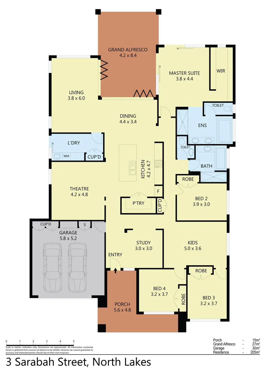 - Spacious Master suite combines 5 star luxury with all the comforts of home and boasts a spacious walk in robe and an elegant and glamorously appointed ensuite with stone benches, spa and large shower. The master boasts beautiful timber and glass sliding doors that flow out to entertaining and yard affording a peaceful tranquil feeling within