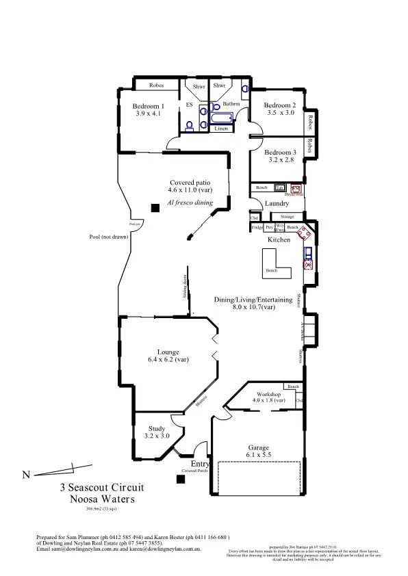 The flexible design works perfectly as a family home featuring 3 bedrooms, 2 bathrooms, office and air conditioning. Other outstanding features include fully landscaped gardens, outdoor shower, vacumaid, double lock up garage and workshop.