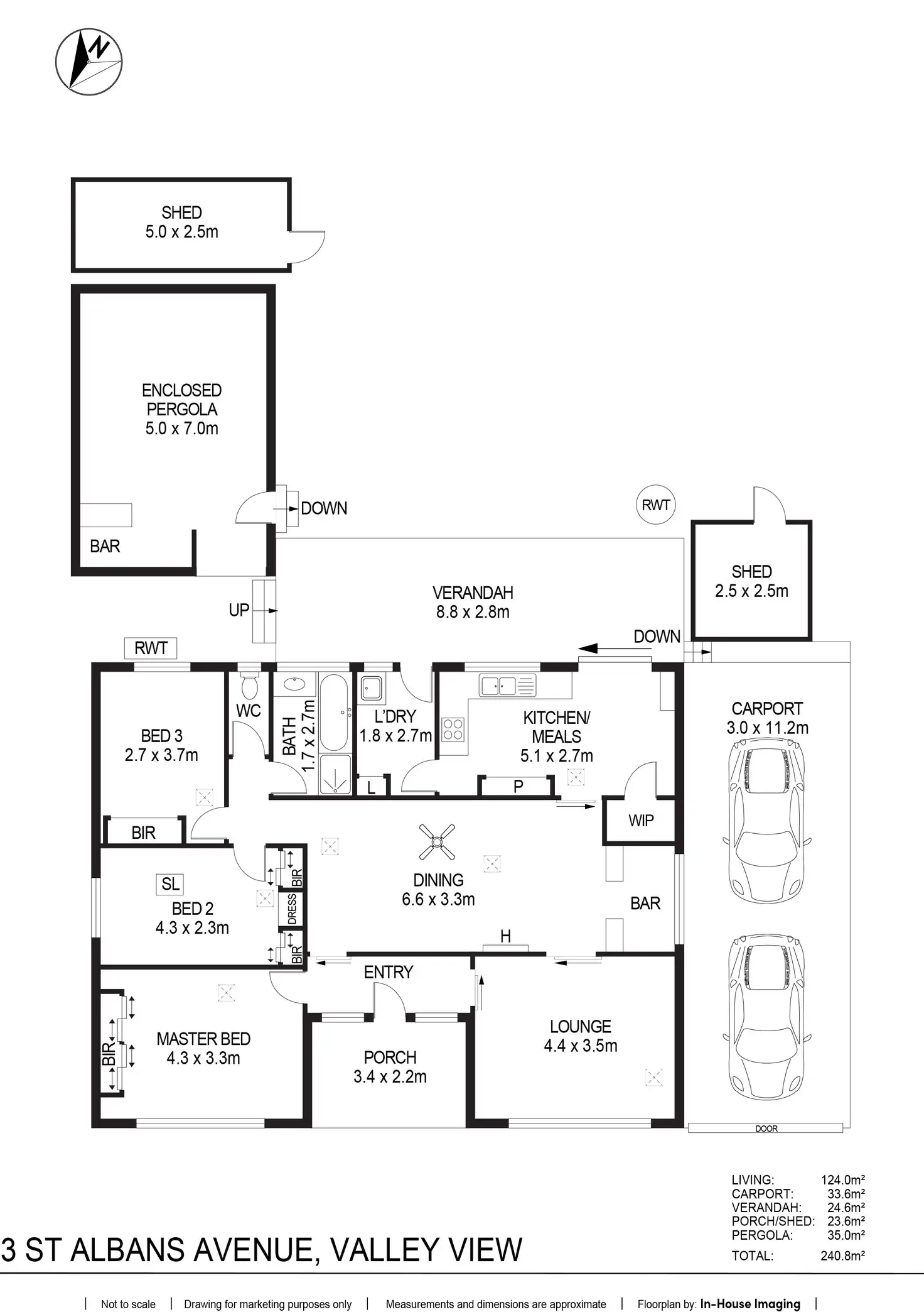 • Enclosed pergola with bar for entertaining