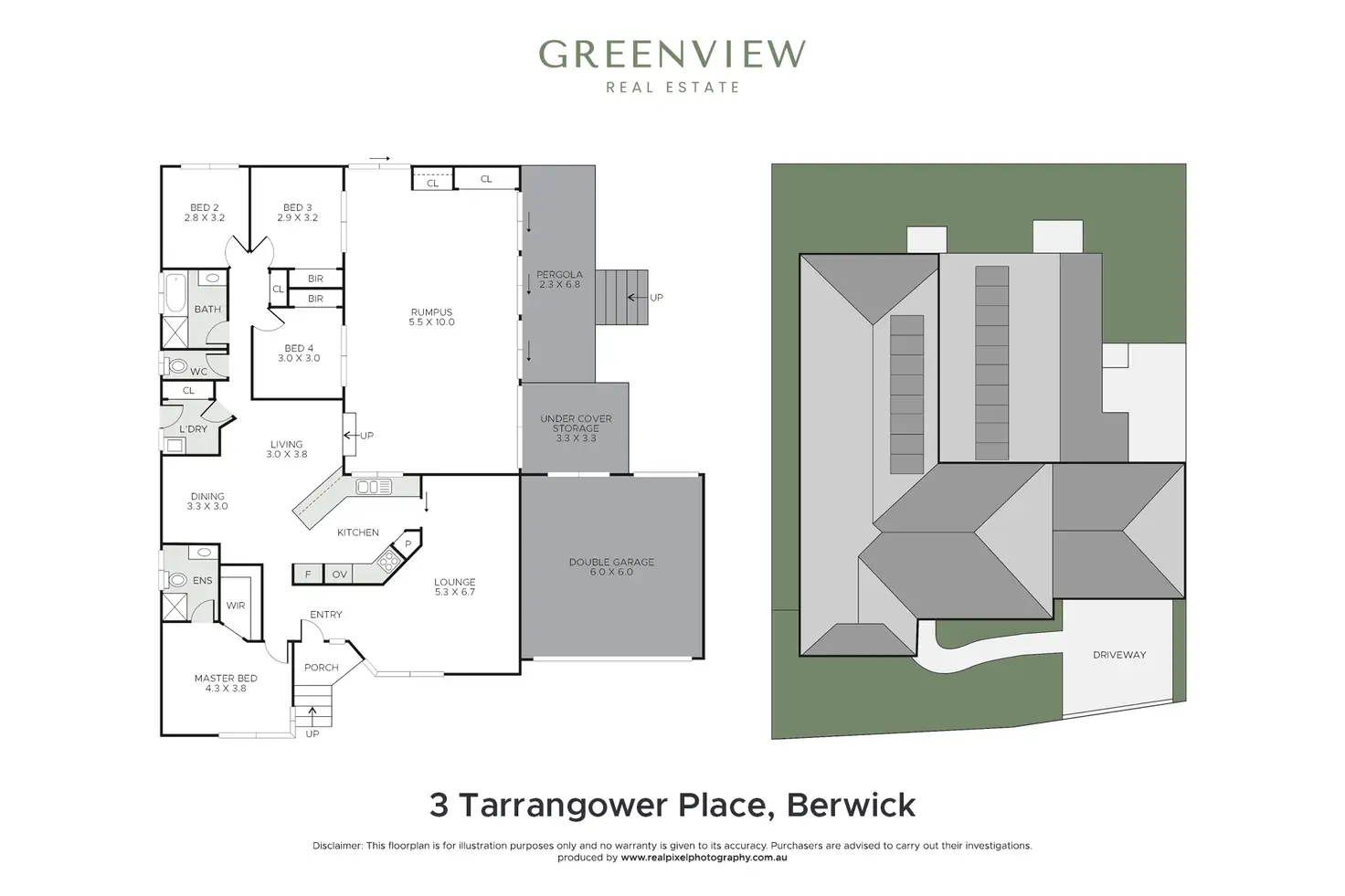 • Double garage with rear roller door and extra rear storage shed