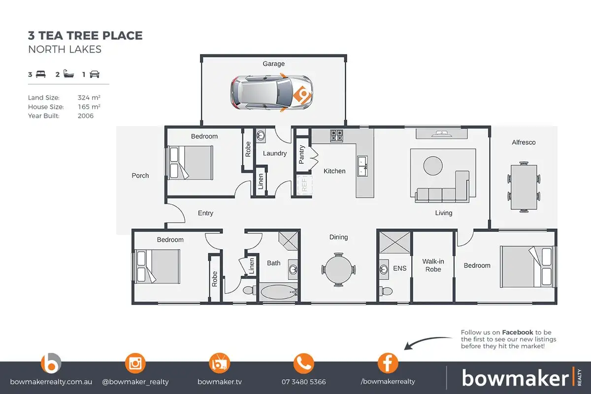 3 Bed • 2 Bath • 1 Car • 324m²