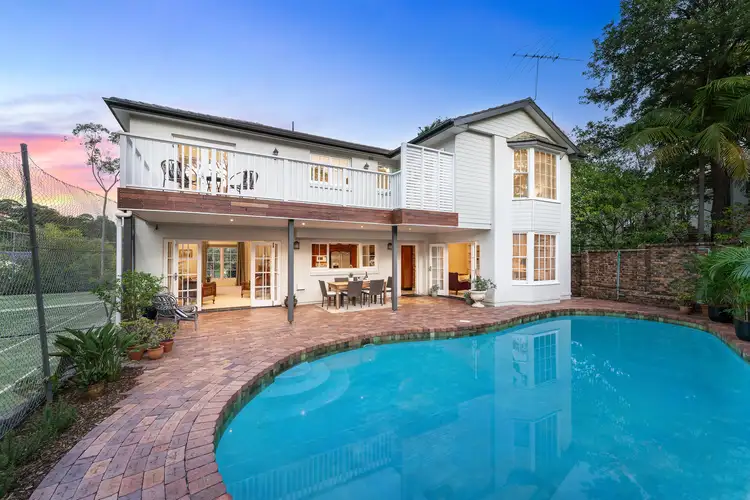 This classic character residence poised high-side in a beautifully quiet cul-de-sac stands as a rare opportunity on a substantial 1075sqm (approx.) with wide 34.3m (approx.) frontage, a pool and a full-size tennis court. Exuding an English style charm and inviting street appeal, the home has been tightly held for almost 50 years making this a prized generational purchase. North-easterly facing with a stunning green outlook and awash with all day sunlight, its dual level floorplan is fresh and airy, delivering gracious formal living and dining rooms, a separate family room and five upper level bedrooms. The lower level is full brick and the home very solid, well-presented and comfortable as is whilst holding a wealth of potential for buyers seeking the perfect space for their forever home. Renovate, reconfigure or replace (STCA) in an idyllic pocket on the doorstep of the National Park, footsteps to walking tracks, bus services, parks, the local shops and Killara High School.