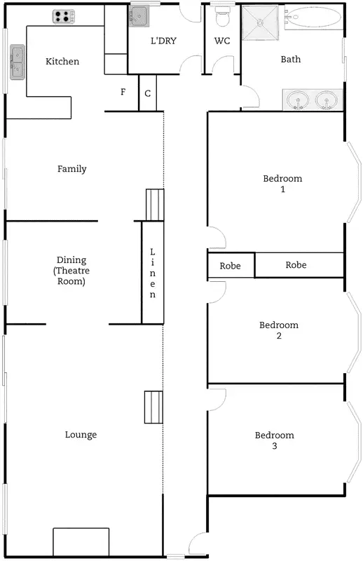 - 3 large bedrooms, all with built-in robes and bay windows with built-in storage units