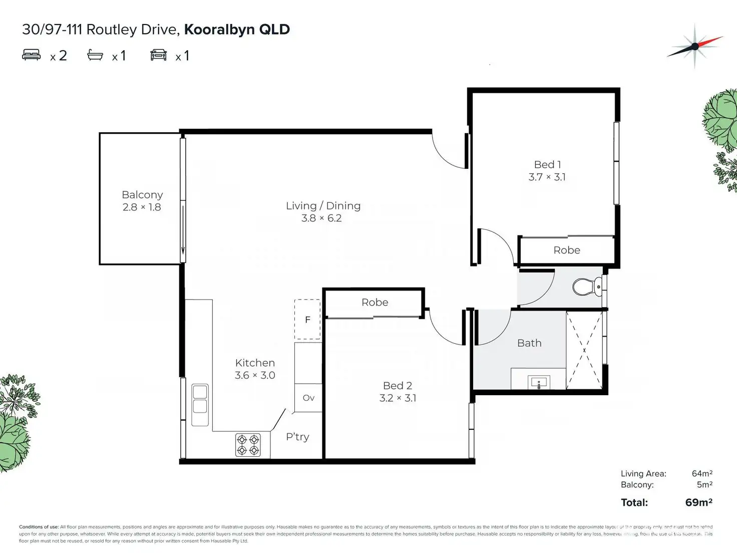 2 Bed • 1 Bath • 1 Car