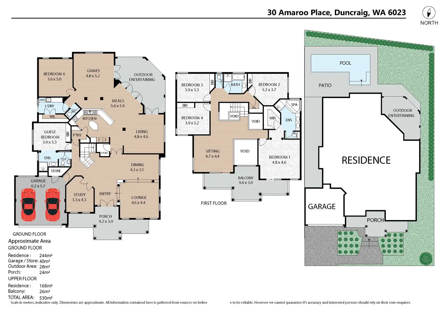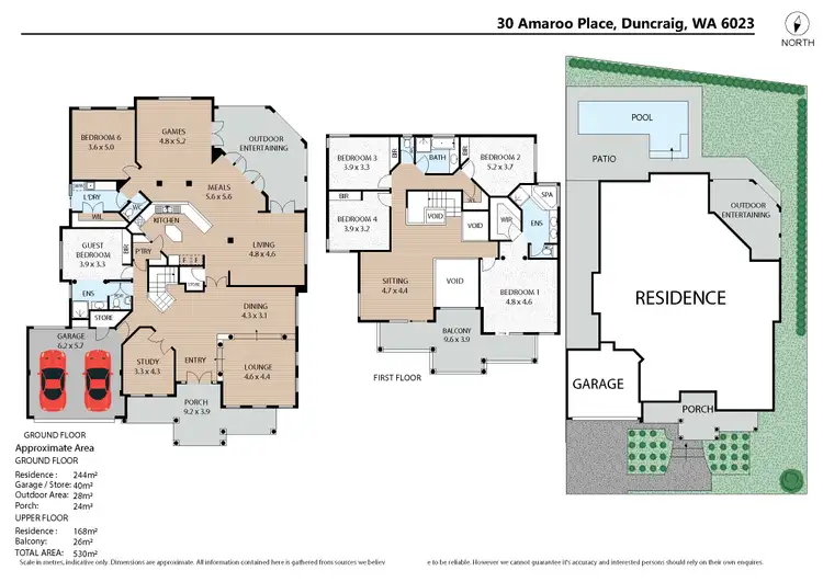Downstairs, the flexible floor plan caters to multi-generational living, with formal lounge and dining rooms for special occasions. A private guest suite features built-in robes, an ensuite, and a two-way powder room, while spacious games and 6th bedroom expand the living options beyond the vast open-plan family, meals, and kitchen area.