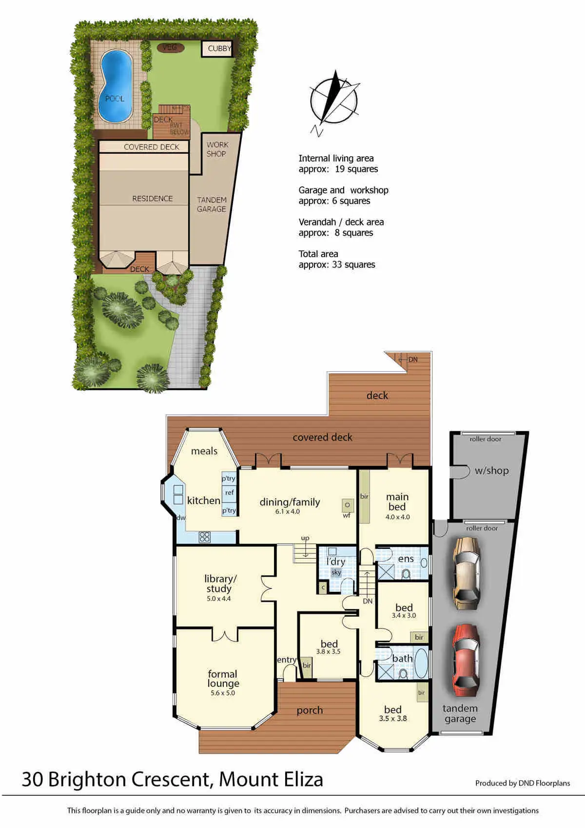 Further attributes include: a serviceable laundry, linen cupboard, double tandem garage with workshop ideal to fit a caravan or small boat, evaporative cooling + ducted heating, floating floorboards, soaring ceilings, 3,000L water tank, under house storage and much more.