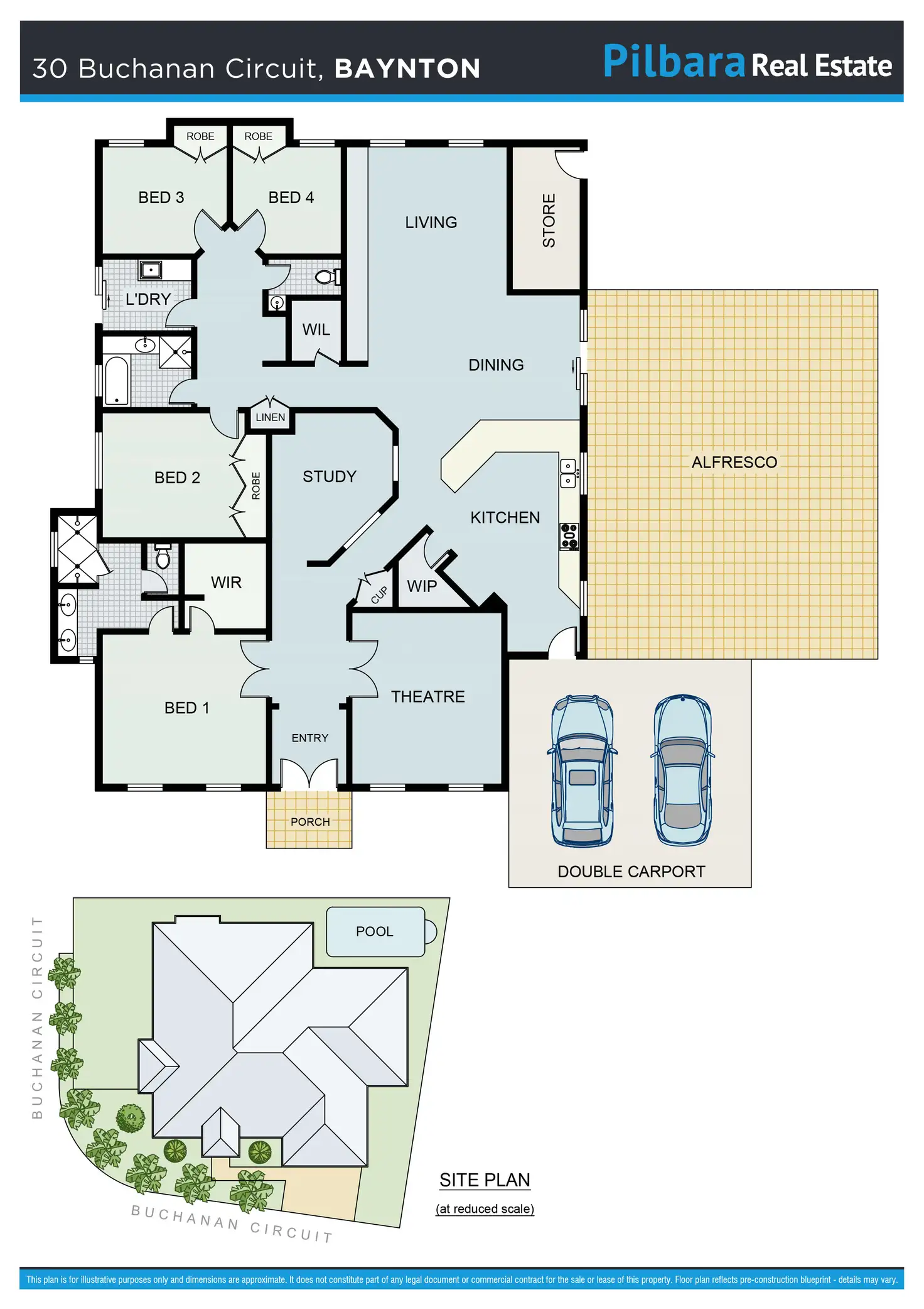 Open living/dining plus theatre and study/home office