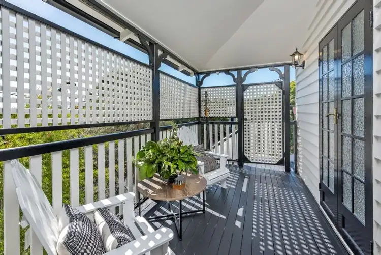 A partially enclosed verandah to the front of the home offers a private space to enjoy a morning cuppa while soaking in the sun.