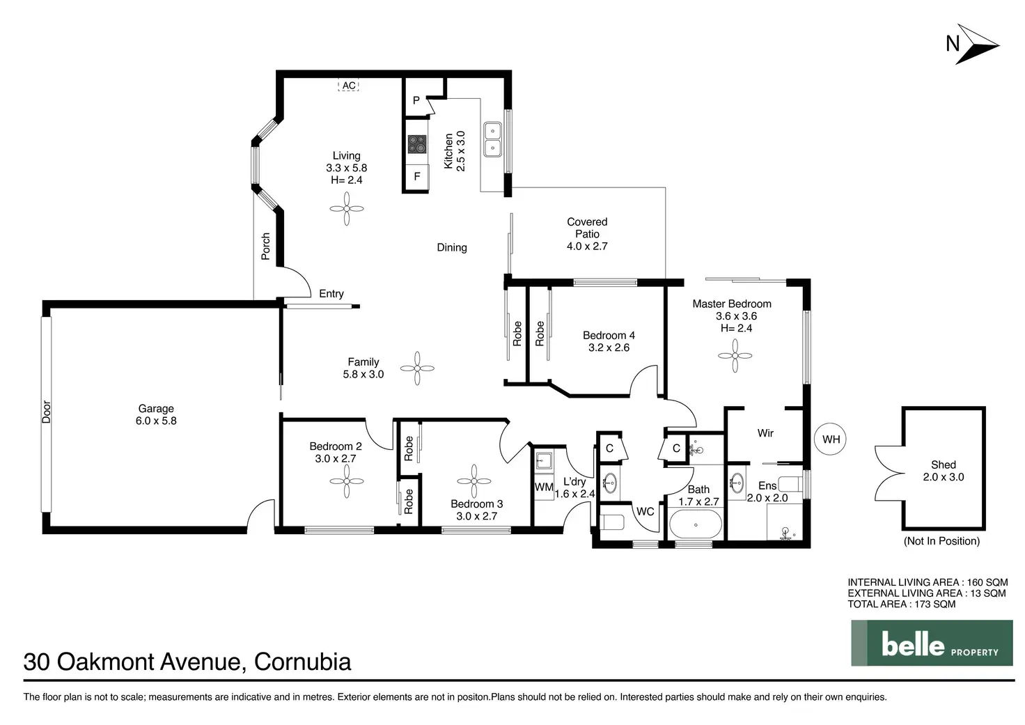 Features - Garden shed and ceiling fans in living areas.