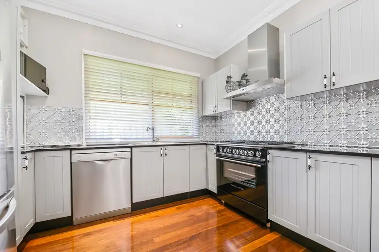 An entrance hall of imposing scale featuring high ceilings, timber floors, period style arches, introduces a magnificent living room with bay windows, an ornate gas log fire and leads to a fantastic home o?ce. The elegant kitchen appointed with granite bench top, decorative pressed tin splash back, gas cooktop also includes a brand new state-of-the-art self-cleaning Fisher & Paykel oven.