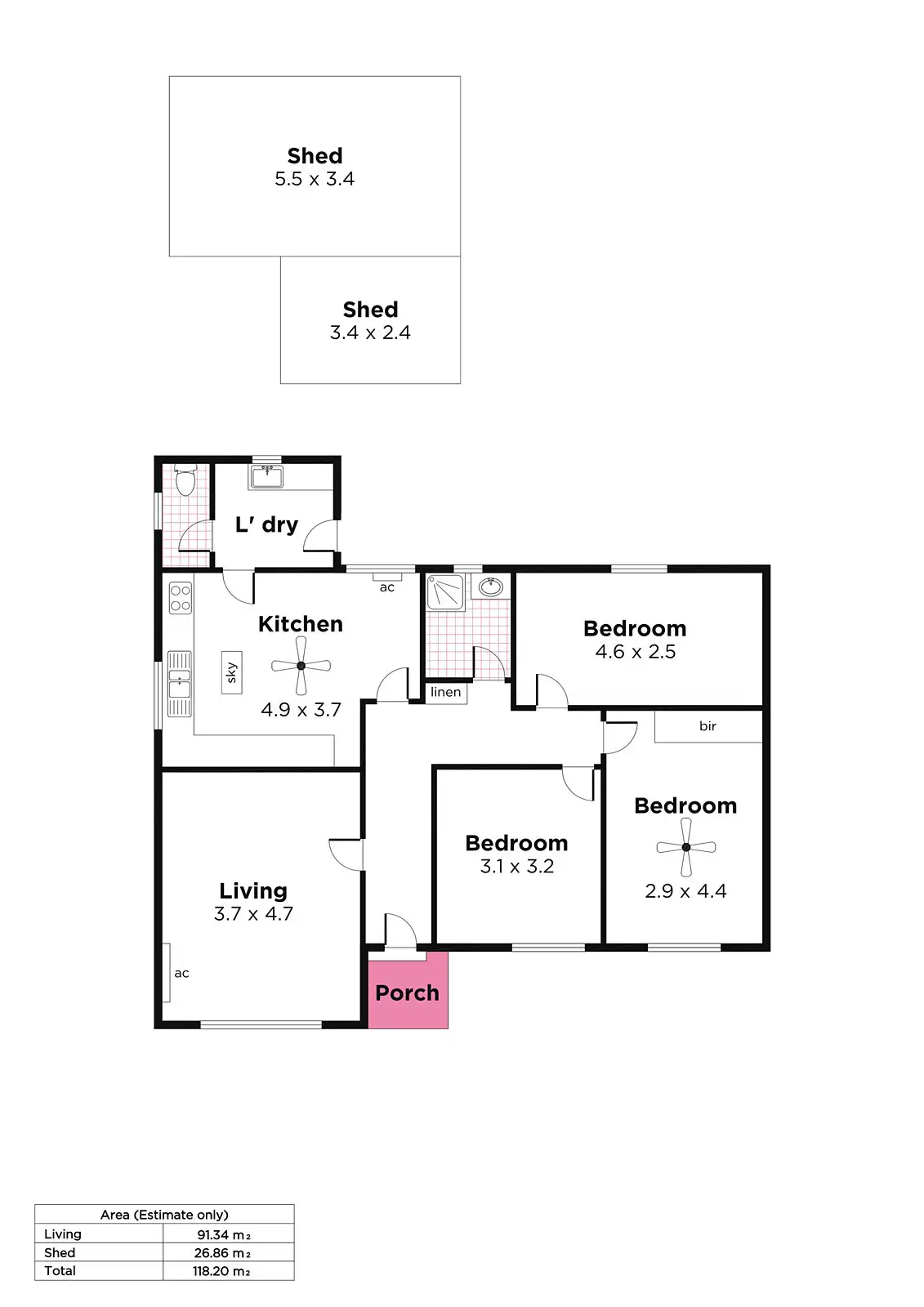 3 Bed • 1 Bath • 2 Car • 813m²