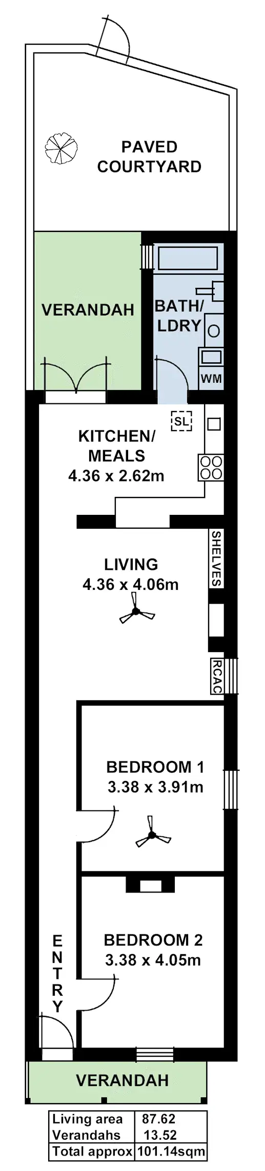 2 Bed • 1 Bath • 0 Car • 117m²