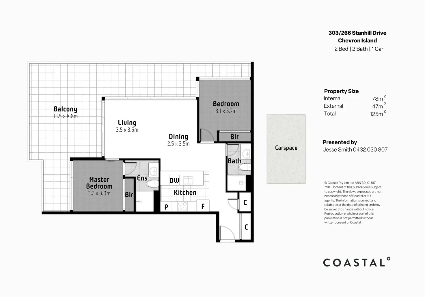 • Two bedrooms, two bathrooms & one secure car space