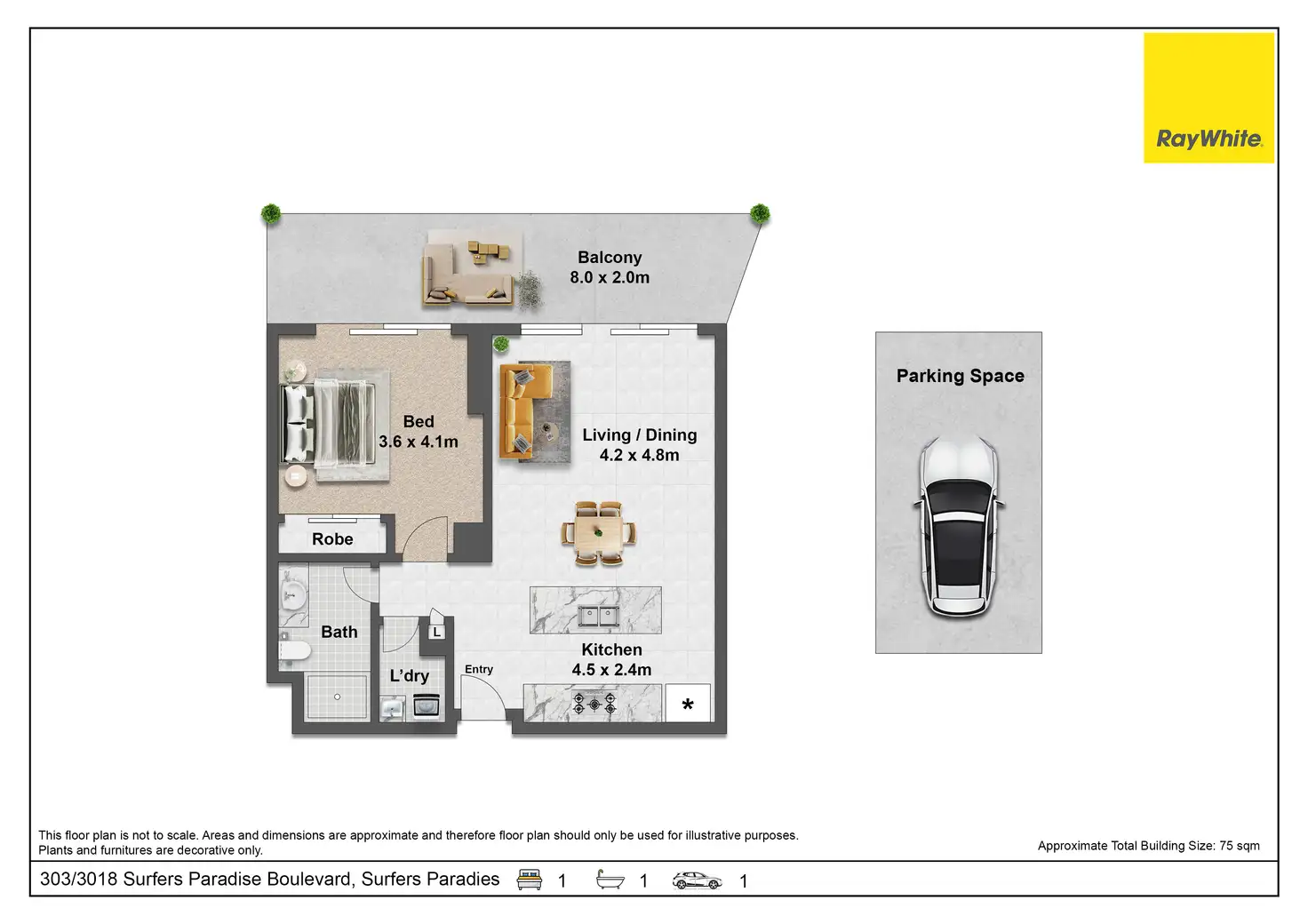 1 Bed • 1 Bath • 1 Car • 77m²
