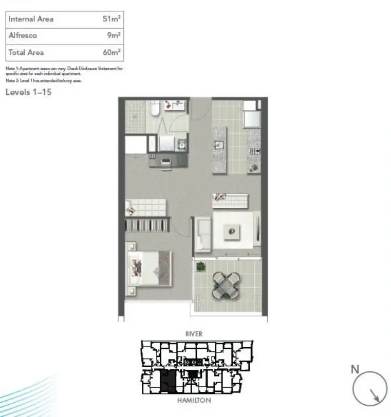 1 Bed • 1 Bath • 1 Car • 61m²
